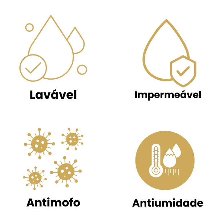 Sim. O envelopamento é lavável, impermeável, antimofo e antiumidade, podendo ser usado em cozinhas, banheiros e áreas comerciais sem perder a qualidade.